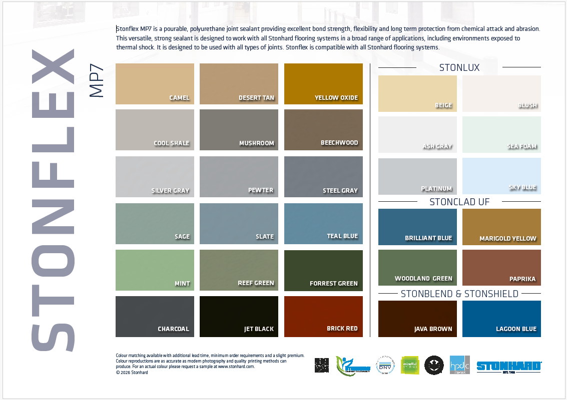 Stonhard oferuje szeroki wachlarz standardowych kolorów do wyboru, ale nie ogranicza się tylko do nich. Zapytaj o ekskluzywną paletę kolorystyczną, dopasowanych i niestandardowych mieszanek kolorów realizowanych do projektu, również z rysunkami i logo.